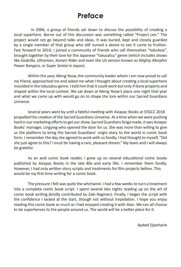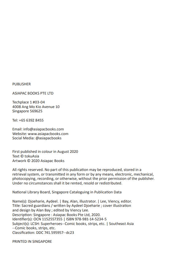 SACRED GUARDIANS is the comic book prequel story to Sacred Guardian Singa: A Singapore Superhero Project, and is illustrated by Alan Bay - artist behind Once Upon a Singapore... Traders and Pioneers of Singapore!